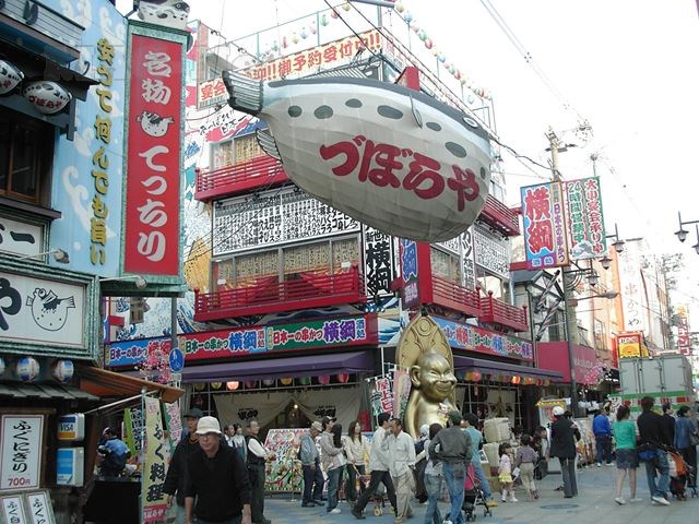 周りには串かつ屋が軒を並べており、その中でひときわ目を引きのが、てっちりやの「づぼらや」の看板?です。