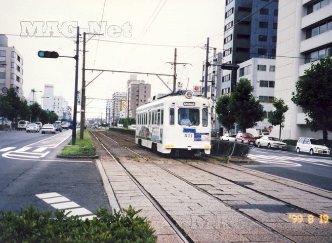 阪堺電車と言うのは路面電車の車体を使った堺まで延びる1両編成の電車で、通常の線路と路面を走ります。
