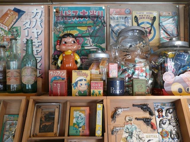 境内には、「小さな駄菓子屋さん博物館」というミニ展示館があり、明治から昭和に流行った駄菓子やおもちゃが展示されています。