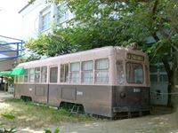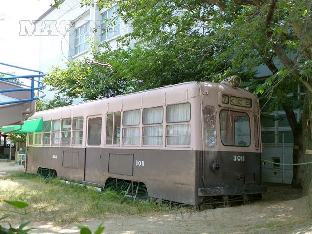 大阪教育大学の附属幼稚園の園庭に、昔の路面電車があります。