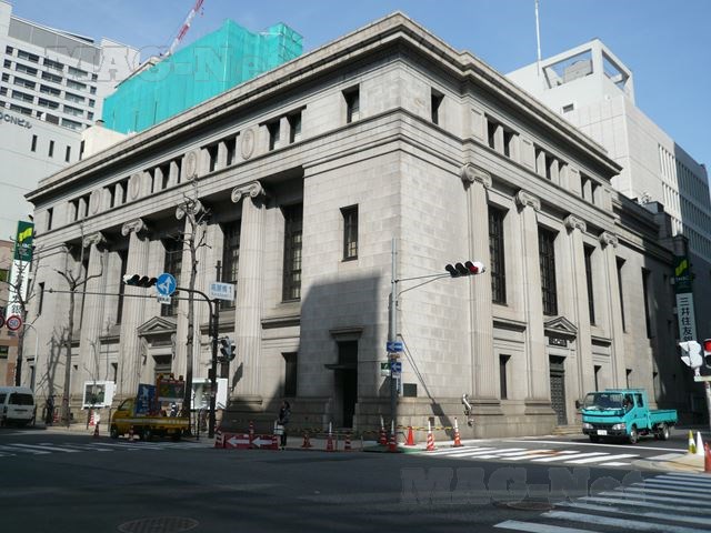 銀行や証券会社がひしめく北浜界隈ですが、堺筋に目を移すと石造りの三井住友銀行の大阪中央支店の建物もあります。