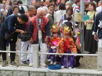着物を羽織った可愛らしい稚児行列が、石段を下りて市杵島社まで更新します。