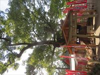 子宝祈願の神社で、両側を石灯篭でで挟まれた先には百度石があります。