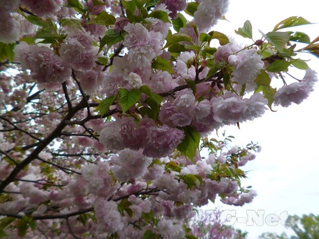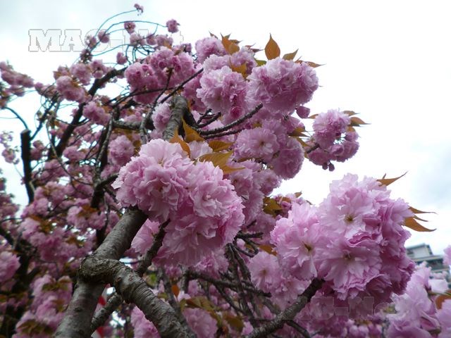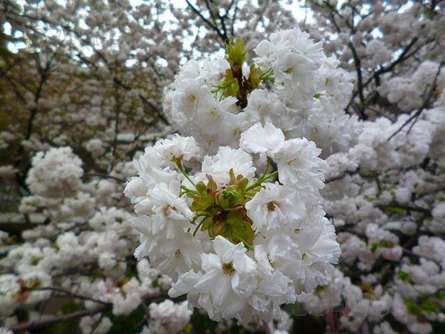 その通りの両側に、遅咲きの八重桜をはじめとして関山、普賢象、松月、紅手毬などの様々の種類の桜が植えられています。
