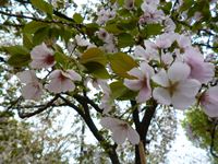 白、ピンク、黄色の珍しい桜を見ながらの一瞬の花見体験でした。