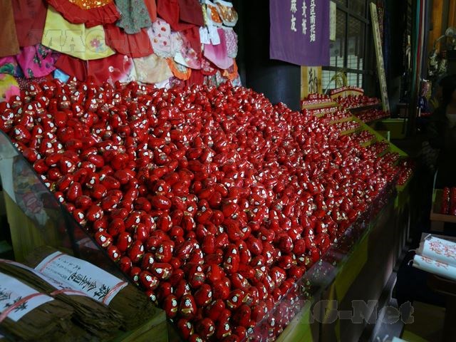 本堂には「弁天様の幸せ願いダルマ」と呼ばれる奉納された小さなダルマが、うず高く積まれています。