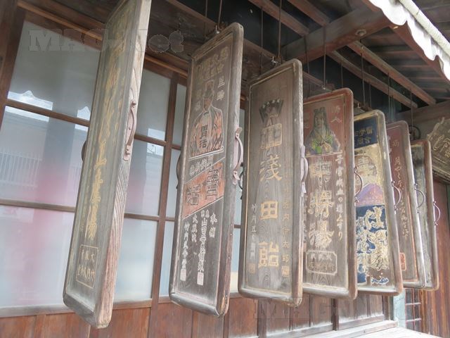 街道に面した壁には、薬を示す木の看板が並んでいるのが特徴です。