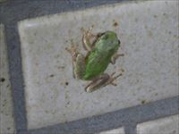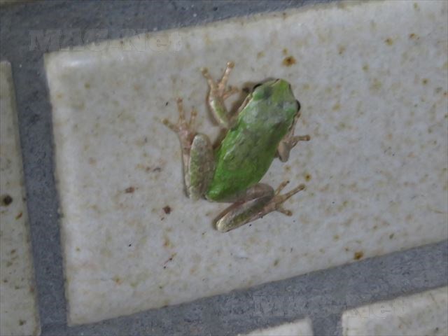 そしてそのベンチには、先約のアマガエルが腰を掛けていたのでした。