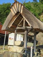 集落の西の入口に建つ茅葺きの四足門で、よそ者が村に入るのを厳しく監視してきました。