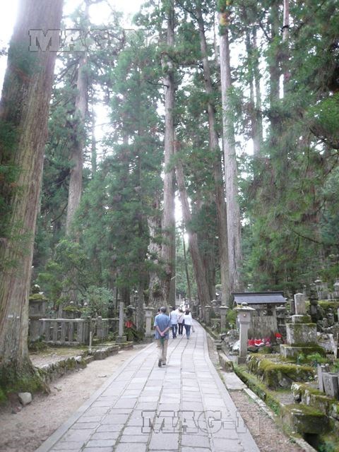 奥の院の帰りは、中ノ橋、一ノ橋とお墓の中の2kmに渡り敷き詰められた石畳の道を、周りのお墓を見ながら歩きます。