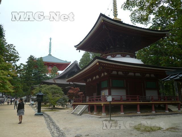 高野山の観光写真で必ず掲載されている、1階が方形、2階が円形の二重の塔です。
