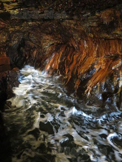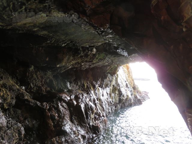 当の洞窟はというと、波が押し寄せるたびに洞窟奥の岸壁に叩きつけられ大きな音が響きます。
