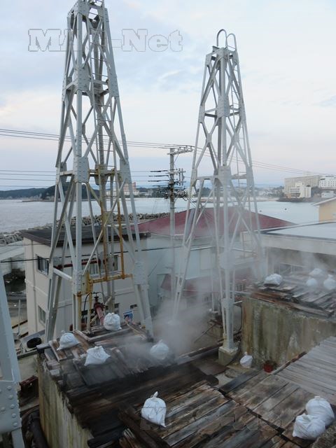 源泉からは硫黄の臭いを伴う白い湯気が揚がっています。