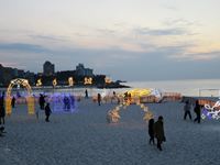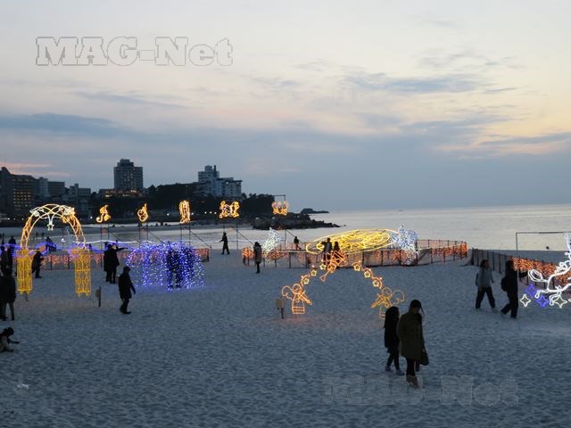 「白砂のプロムナード」と呼ばれるもので、砂浜に造られたモニュメントが幻想的に明るく光り輝きます。