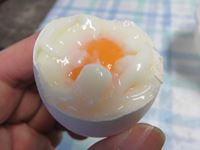 軽く塩を振り、頂上のトロリと流れそうな白身をスプーンですくうと、奥に隠れていた黄味が顔を出します。