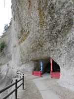 不動尊が浸食した穴を利用したように、そこに辿り着くまでの参道もトンネルを潜ってやってくる珍しい不動尊です。