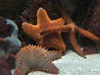魚が泳ぐ大水槽と、イソギンチャクやウニ、ヒトデが飼育されている小分けにした水槽を順に見て行きます。
