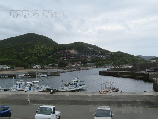 「網代新波止」の西側に位置する「大引漁港」が見えます。