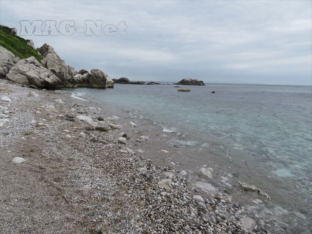 水は透明で透き通っており、浜には丸く角の削れた石が転がっています。