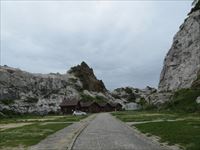白い石灰岩の岩肌の谷間に囲まれて、バンガローは建っています。