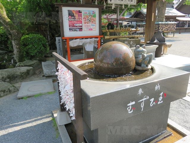 境内には井戸の神様を祀っていたり、丸い石が湧き出る水でずっと回っている「むすび玉」もあります。