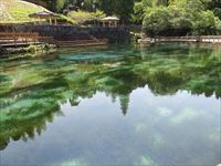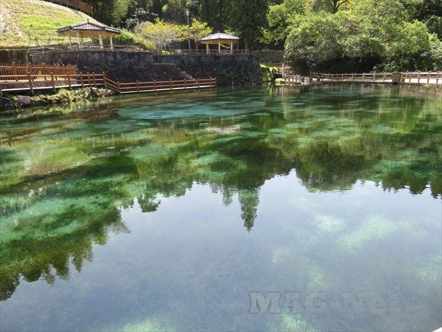日本名水百選のひとつに選ばれている丸池は、日量約6万トンの水が湧き出しています。