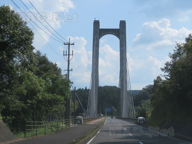 道路は滝から続く川内川に架かる綺麗な吊り橋を渡ります。