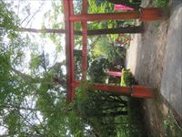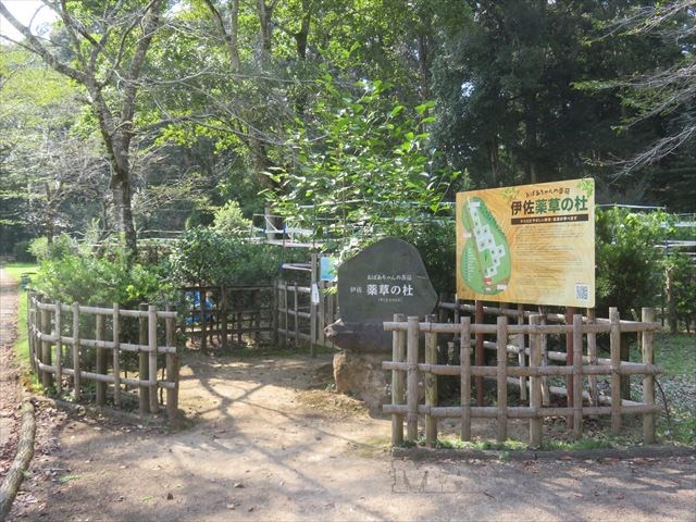 駐車場に車を止めて外に出ると、遺構までの道の入り口に「薬草の社」があります。