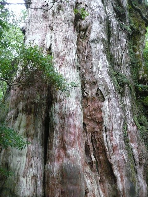 樹齢3000年の「大王杉」、2つの幹の一方から出た枝が他方の幹に食い込んで、まるで手をつないでるように見える「夫婦杉」が続きます。