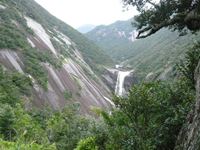 瀧の両側が巨大な花崗岩の岩盤で囲まれ、凹凸のない均一の傾斜で切り立っているところが美しさを作り出しています。