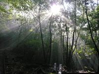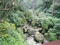 木々が生い茂り、出会った川には苔むしる石が転がっている中を、ひたすら歩きます。