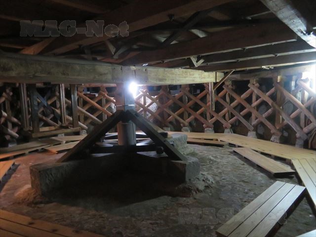 舞台の真下には廻り舞台を回すために円形のレールが敷かれており、それを人力で押して舞台を回すのです。