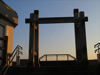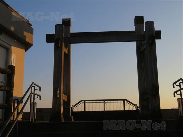 その先には、珍しい形の門があります。