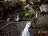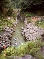 これは、約12万年前と9万年前の2回に渡る阿蘇火山活動の際に、噴出した溶岩流が五ヶ瀬川に沿って帯状に流れ出し急激に冷却されてできた侵食谷です。