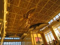 中通島の有川港はターミナルビルは、天井から鯨がぶら下がっています。