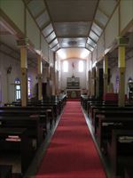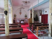 家庭的な教会で、祭壇には地元の信者が製作した聖母像が祀られています。