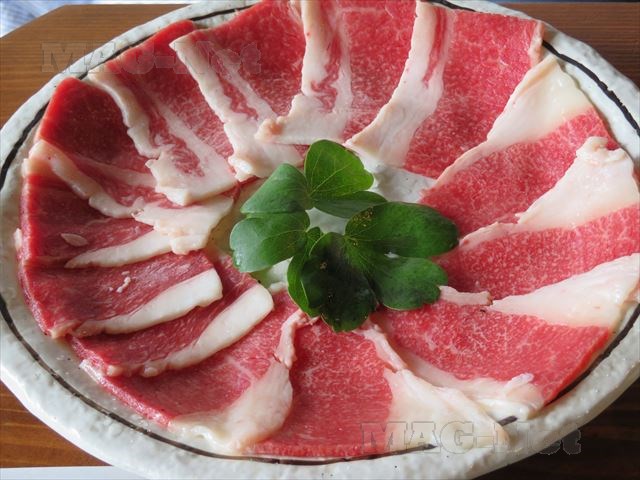 脂身の程よく付いた、花のような肉が食卓に並びます。