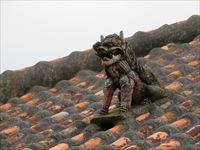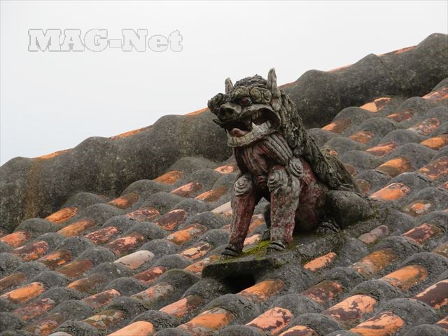 牧志邸は1923年に建てられた石垣市長 牧志宗得の旧邸宅で、門に当たる塀の入り口の両側には大きなシーサーが門番をしています。