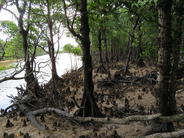 地上にまで根が張り出したマングローブ林は、一種異様な雰囲気があります。
