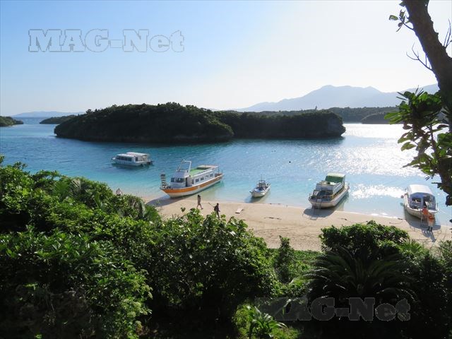 浜にはグラスボートが並び、陸を先頭に船は浜に乗り上げています。