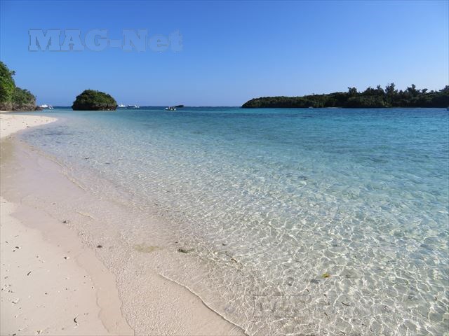 浜に降りると、澄んだ海水で海の底が見えていることに驚きます。