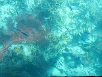 遠浅の海は船底がすぐ海底で、サンゴの間を黄色や青の魚が泳ぐ様子を見ることができます。