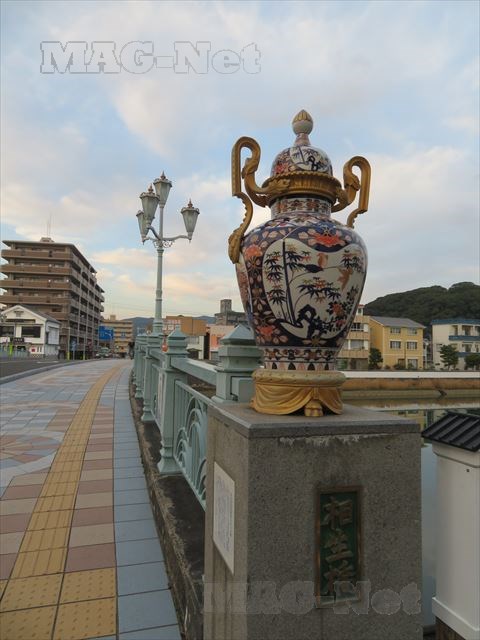 一方の「相生橋」には、欄干の上に立派な伊万里焼の壺が備えられています。