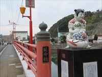 橋の対岸には座っている唐子を描いた「古伊万里色絵瓢箪鯰唐子座像」のあります。