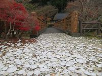 地面には落葉したイチョウの葉が積もり、黄色い落ち葉のじゅうたんを作っています。