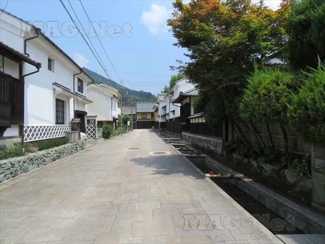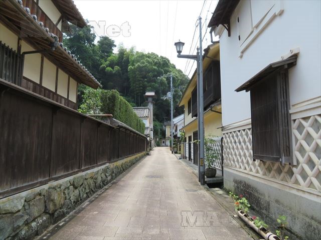 白漆喰となまこ壁の蔵や、木の塀に囲まれたこの通りは、明治の風景を伝えています。