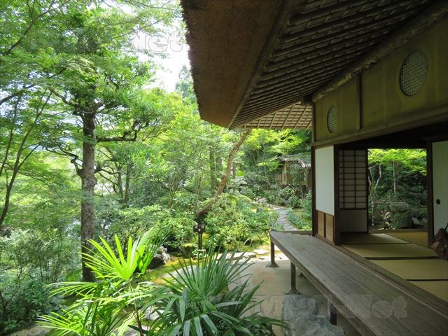 庭園を臨む藁ぶきの屋敷の中を、見て回ることができます。