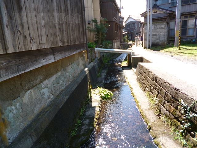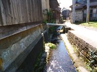 「三角家」の横の小川では、海に向かって澄んだ水が注がれています。