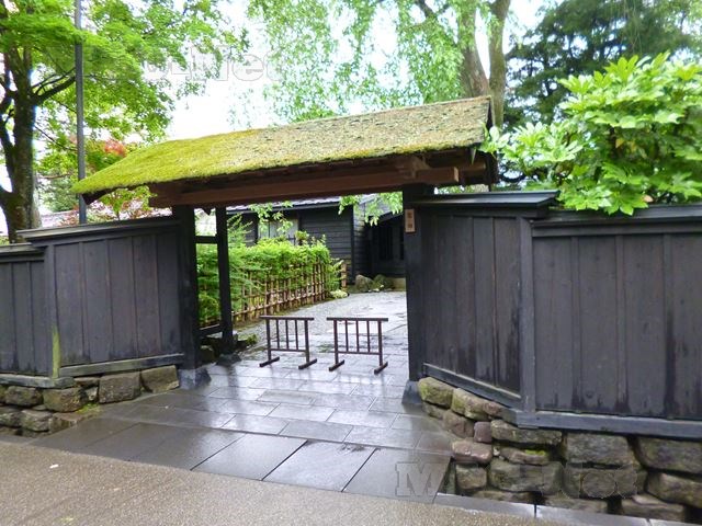 苔の蒸した門の屋根は、雨上がりの武家屋敷に鮮やかな緑を放っています。