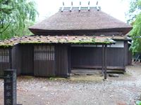 茅葺き屋根の母屋とのぞき窓のついた黒板塀、正玄関と脇玄関を備えて武家の高い格式を示しながら簡素なただずまいとなっています。